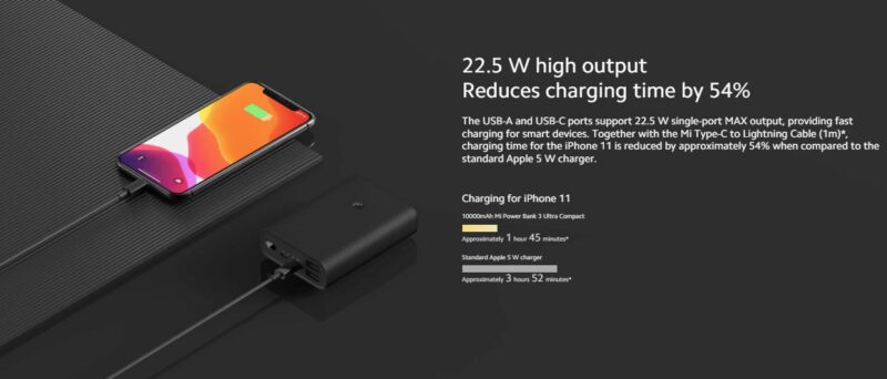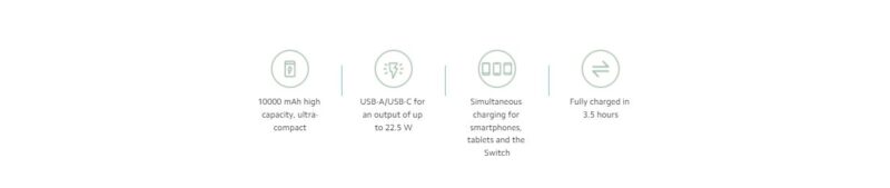 Output parameters: 22.5 W MAX Multiple ports 5V=3A USB-A 5V=2.4A, 9V=2.5A MAX 12V=1.85A MAX USB-C 5V=3A, 9V=2.5A MAX 12V=1.85A MAX