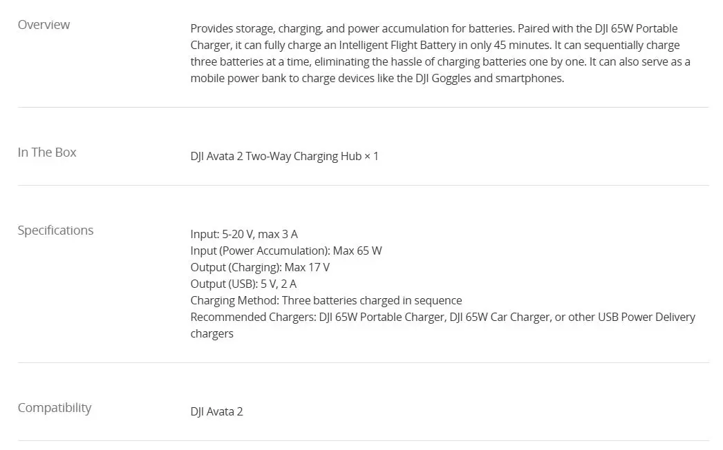 - Charges up to 3 DJI Avata batteries simultaneously.