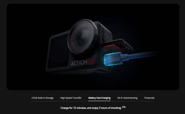 - Battery fast charging: Charge for 15 minutes and enjoy two hours of shooting