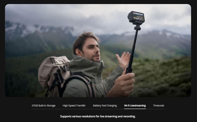 - Wi-Fi live streaming: Supports various resolutions for live streaming and recording