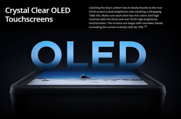 - OLED: High-bright OLED displays on the front and back