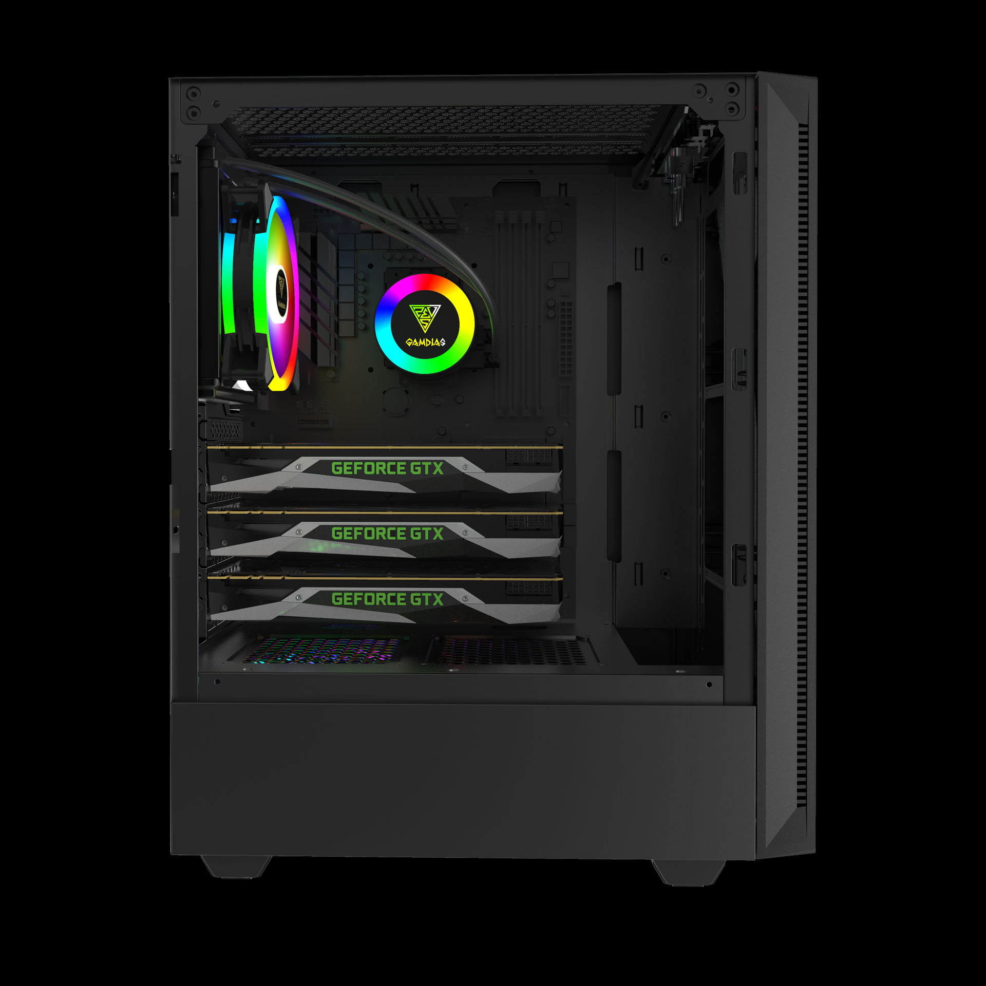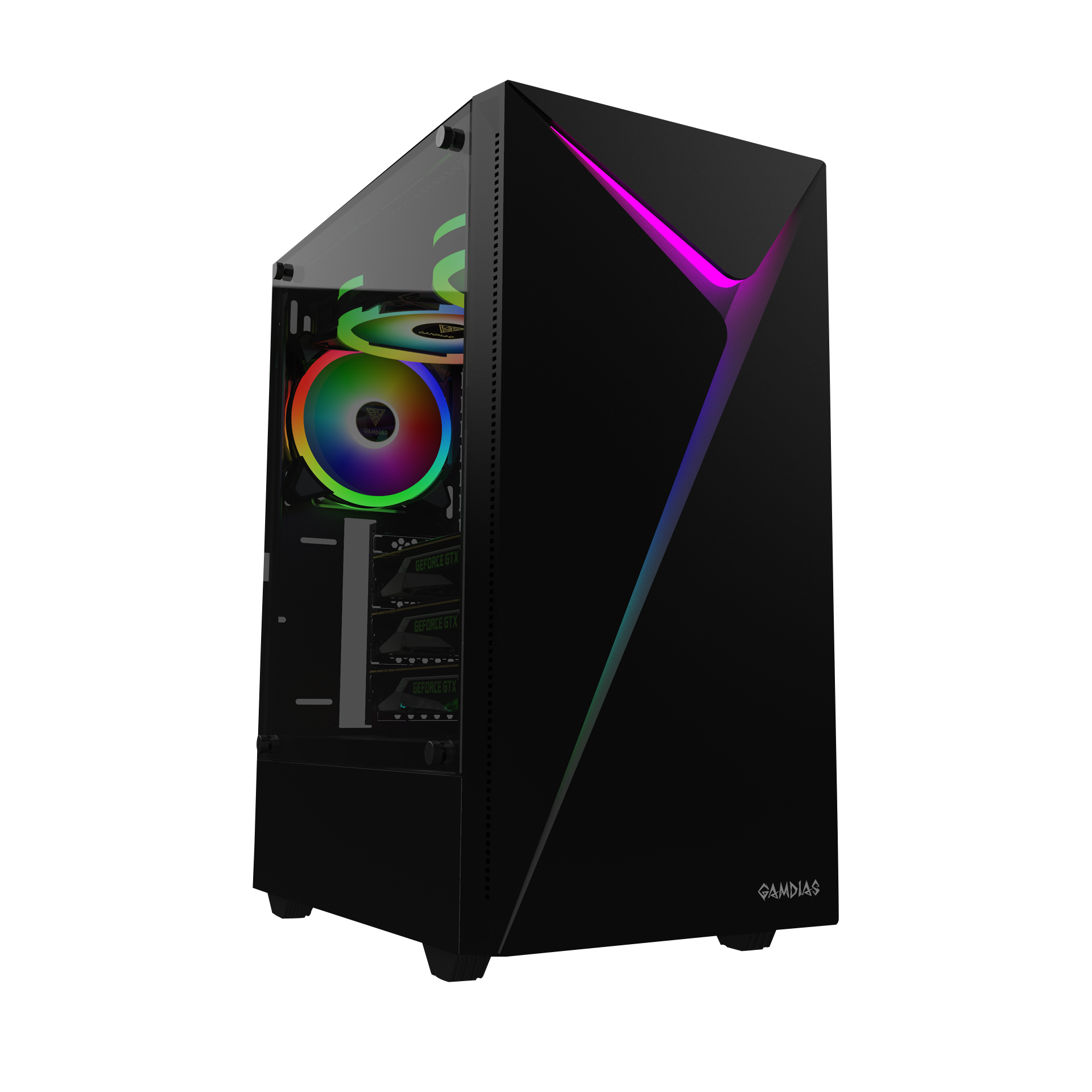 ARGUS E4 is a jet black mid-tower case with an eye-catching crosscut RGB lighting in the front panel, and a panoramic tempered glass side panel. The case is made to distinct itself among the rest and show off your unique build.