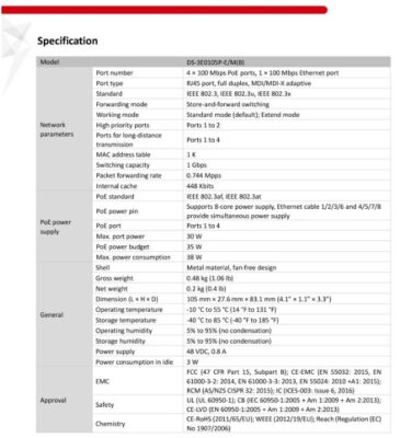 Hikvision DS-3E0105P-E/M 4-Port Fast Ethernet PoE Switch