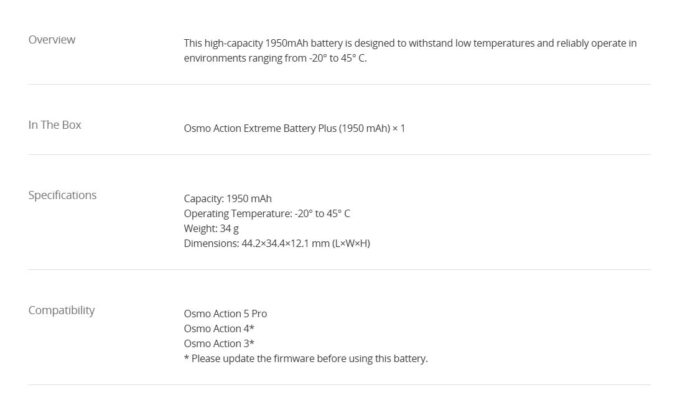 Osmo Action Extreme Battery Plus (1950 mAh)