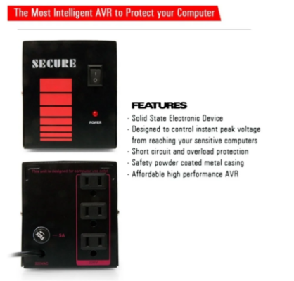 Secure Avr 220v Automatic Voltage Regulator 220 Volts with Surge Protection Short circuit Protection and Overload Protection Power Supply For Desktop