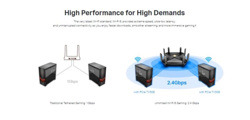 - Unrivalled Wi-Fi 6 Speed—Breaks the gigabit barrier with speed up to 2402 Mbps (5 GHz) + 574 Mbps (2.4 GHz)