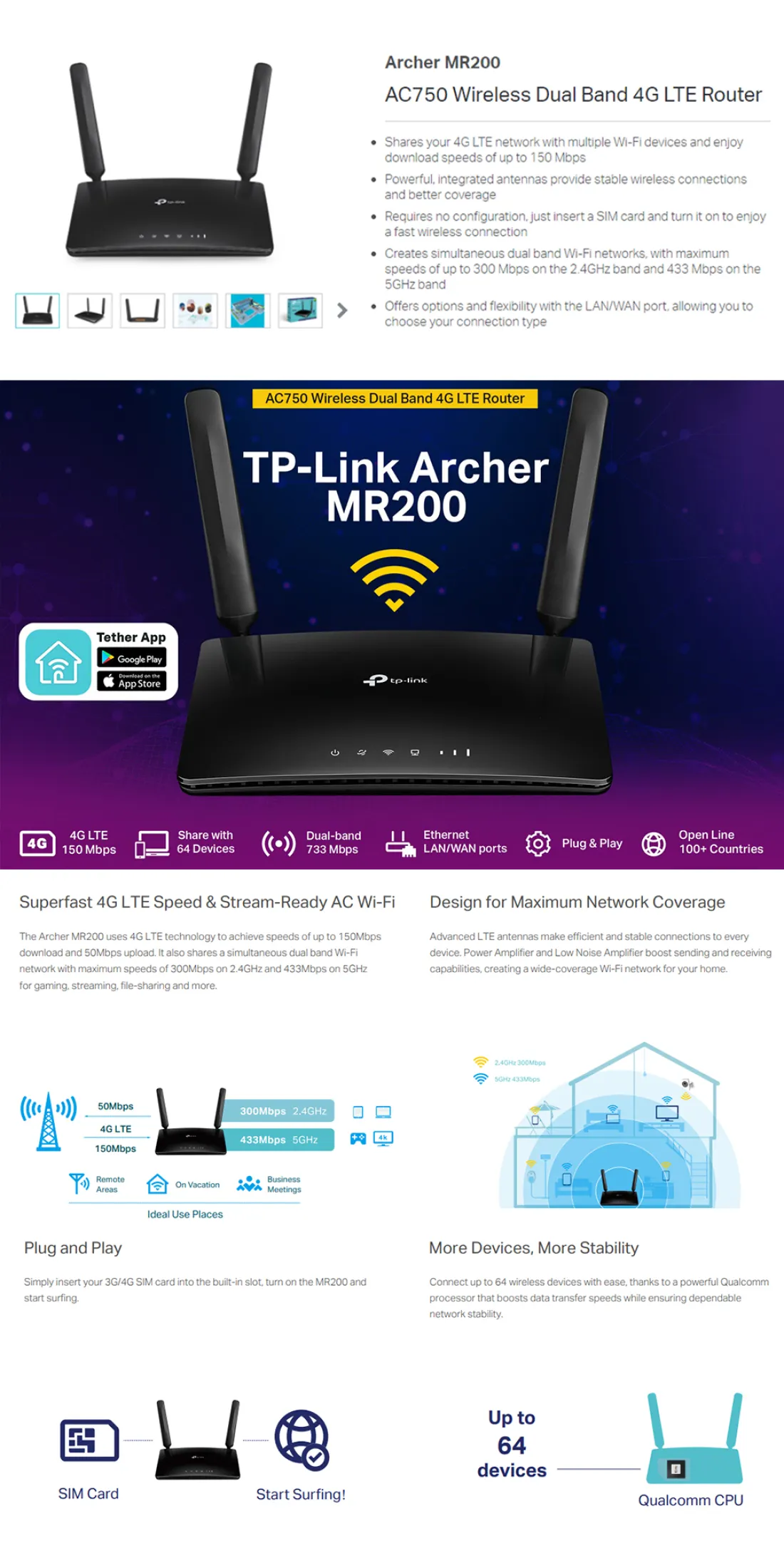 TP-LINK Archer MR200 AC750 4GLTE Router