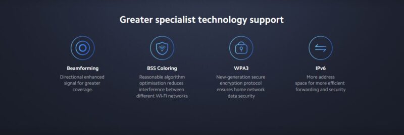 • Stay connected thanks to Wi-Fi 6 with OFDMA technology, enhanced Beamforming signal. Simple operation via the Xiaomi Home application and support for up to 254 devices working simultaneously